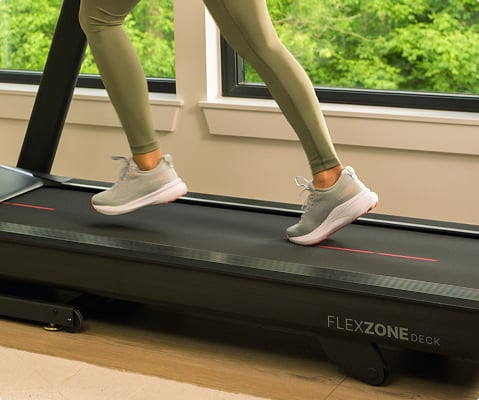 Go ahead, pick up the pace. With a 50 cm wide running area and Flex Zone cushioning, you have the support and stability you need to go the distance.
